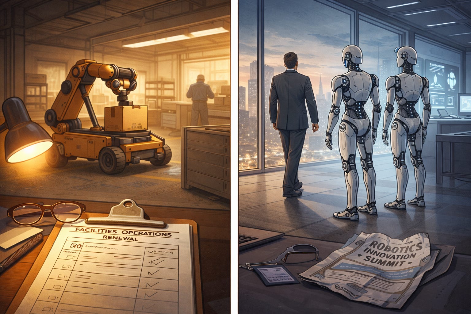 He arrived ten minutes early and sat quietly, folding his hands on the conference table as if he were waiting for a dentist. His badge said Facilities Operations, which in this building meant that when something broke at three in the morning, it became his problem. He did not talk about the future. He did not mention artificial intelligence. He asked instead whether the robot could still complete its task if the Wi-Fi went down.